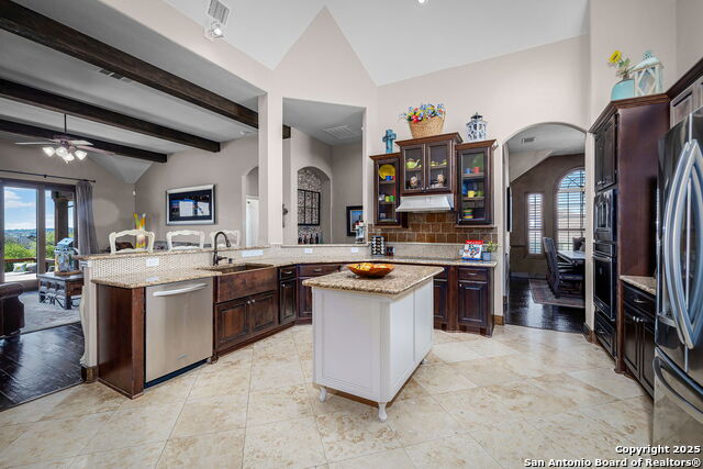 - Interior Features: Three Living Area, Liv/Din Combo, Separate Dining Room, Eat-In Kitchen, Two Eating Areas, Island Kitchen, Breakfast Bar, Walk-In Pantry, Game Room, Utility Room Inside, High Ceilings, Open Floor Plan, Pull Down Storage, Skylights, Cable TV Available, High Speed Internet, All Bedrooms Downstairs, Laundry Main Level, Laundry Room, Attic - Partially Floored, Attic - Permanent Stairs