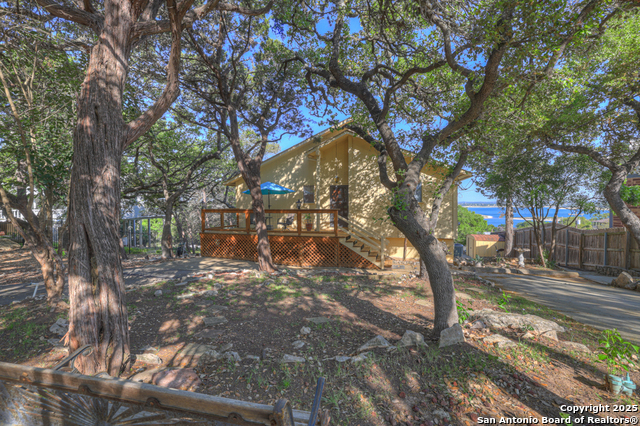 DescriptionWelcome to this beautifully maintained home offering breathtaking views of Canyon Lake and a unique layout designed for flexibility and comfort. Situated on a .35 acre lot with mature oak trees and ample outdoor space, this property features two complete living areas ideal for hosting guests, multi generational living, or income producing short term rentals. The main level serves as the primary residence, featuring 2 bedrooms, 1.5 bathrooms, and an open concept layout that seamlessly connects the kitchen, dining, and living areas. Soaring ceilings with large windows to allow for natural light, laminate flooring, and a wood burning fireplace with blower fan add warmth and charm. Enjoy the expansive lake views from inside and from the large patio deck, accessed through double doors off the main living space. A laundry room is conveniently located just off the kitchen. Connected by an interior spiral staircase, the lower level also offers a private exterior entrance from the back patio and includes 2 additional bedrooms, 1 full bathroom, a second kitchen, dining, and living area, plus an additional laundry room. This self contained space offers privacy and convenience for permanent living, extended stays or rental opportunities. Outside you will find two separate driveways, including boat friendly accommodations, front and back porches to capture the views at any time of day, a storage shed and grassy yard for recreation or relaxation. HOA amenities including tennis courts, a clubhouse, and minimal restrictions. Located just minutes from the boat ramp, shopping, and dining. Short term rentals are allowed, offering a great investment opportunity. Don't miss this rare opportunity to own a versatile, lake view property with outstanding features and income potential in one of Canyon Lake's most desirable areas.