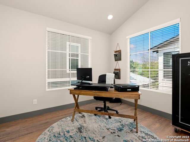 DescriptionTucked into one of New Braunfels' most sought after neighborhoods, this exceptional two story modern home blends sleek design with the charm of a tight knit community. Designed with everyday luxury in mind, the open concept floor plan flows effortlessly between the living, dining, and kitchen areas, enhanced by soaring ceilings, abundant natural light, and premium finishes throughout. At the heart of the home, the chef inspired kitchen features a unique garage door window that opens directly to the outdoor entertaining space, perfect for serving drinks by the pool. A whole home surround sound system enhances both indoor gatherings and outdoor relaxation. The primary suite offers a peaceful retreat with a spa inspired en suite bath, featuring a spacious walk in shower, dual vanities, and a generous walk in closet. Upstairs, you'll find well sized secondary bedrooms and a flexible loft area ideal for a home office, game room, or media lounge. An additional space above the secondary bedrooms is prepped for finish out with A/C and electricity. Step outside to your own private backyard oasis, featuring a 10x15 heated plunge pool that can be enjoyed year round. The low maintenance turf lawn adds ease and beauty to the space, while the oversized garage provides ample storage or room for a golf cart. With a walkable location near local shops and restaurants, and a layout designed for both everyday comfort and stylish entertaining, this home truly captures the quintessential New Braunfels lifestyle.
