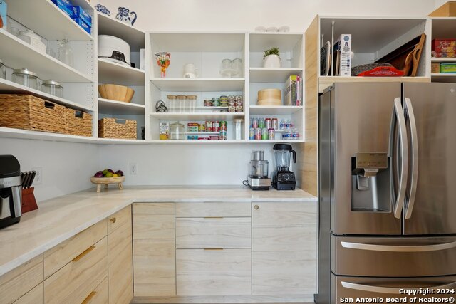 - Interior Features: Two Living Area, Separate Dining Room, Eat-In Kitchen, Island Kitchen, Breakfast Bar, Walk-In Pantry, Study/Library, Shop, Utility Room Inside, 1st Floor Lvl/No Steps, High Ceilings, Open Floor Plan, Maid's Quarters, Skylights, Cable TV Available, High Speed Internet, All Bedrooms Downstairs, Laundry Main Level, Laundry in Garage